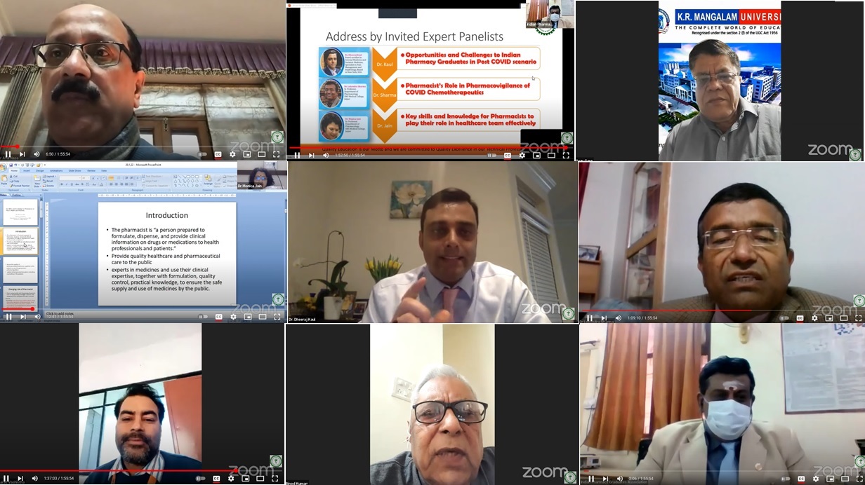 Alwar Pharmacy College, Alwar, in collaboration with IPGA, has organized online webinar in the Zoom portal, on 29 th January 2022 at 09:00 AM. The topic of the webinar was "Opportunities and Challenges to Indian Pharmacy Graduates in Post COVID scenario" Dr. Atul Kumar Nasa, President, IPGA has welcomed all three expert panelists and Dr. Arun Garg, General Secretary, IPGA has inaugurated the webinar. Dr. Monica Jain, Sr. Professor, Department of Pharmacology, SMS Medical College, Jaipur has presented a lecture in which she enlisted and explained “Key skills and knowledge for Pharmacist to play their role in healthcare team effectively”. She explained in detail all key skills required to Pharmacists and the ways to develop it in Pharmacists. Dr. Dheeraj Kaul, Board certified in Internal Medicine and Geriatric Medicine, Specialist in Pain Management and Nephrology, Based in New York, USA, also COVID Analyst has delivered the key note address on the theme of the webinar, "Opportunities and Challenges to Indian Pharmacy Graduates in Post COVID scenario" and very deeply explained with case study reports and with his vast medical experience, has thrown light on the opportunities for Pharmacists in Indian and International perspectives. He motivated the student attendees by enlightening on the scope of Pharmacy students in the next 10 years with evidences of data that projects the services of the Pharmacists in the future society. Also, he emphasized the knowledge set required in AI and ML areas, which are going to rule the Global Pharmaceutical market in the next decade. Dr Lokendra Sharma, Sr. Professor, Department of Pharmacology, SMS Medical College, Jaipur has talked about “Pharmacist’s role in Pharmacovigilance of COVID chemotherapeutics/ chemoprophylaxis” and he demonstrated his experiences with PvPI and the activities of Pharmacovigilance and Materiovigilance to report the Adverse Effects of Drugs and Medical Devices and the role of Pharmacists in the area. Also he appreciated the Pharmacoeconomic features mentioned by Dr. Dheeraj Kaul. Dr. G. Jeyabalan, Principal, Alwar Pharmacy College was the convener-cum-moderator for this webinar. Dr. Bharat Vashistha, Sh. Binod Kumar were appreciated the topics delivered by the speakers. Dr. Atul Kumar Nasa proposed Dr. Dheeraj Kaul to deliver a detailed lecture on Long Term COVID in the IPGA platform in the near future and has been immediately accepted by Dr. Kaul. The webinar was concluded with vote of thanks and chanting National Anthem.